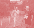 two tracks of cobble stones so their huge outside broadcast vehicles